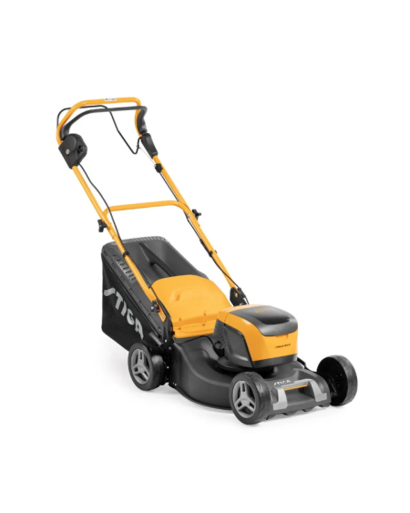 Il rasaerba della STIGA modello MULTICLIP 547 AE Kit a batteria a spinta che consente di coprire superfici fino a 500 m2.