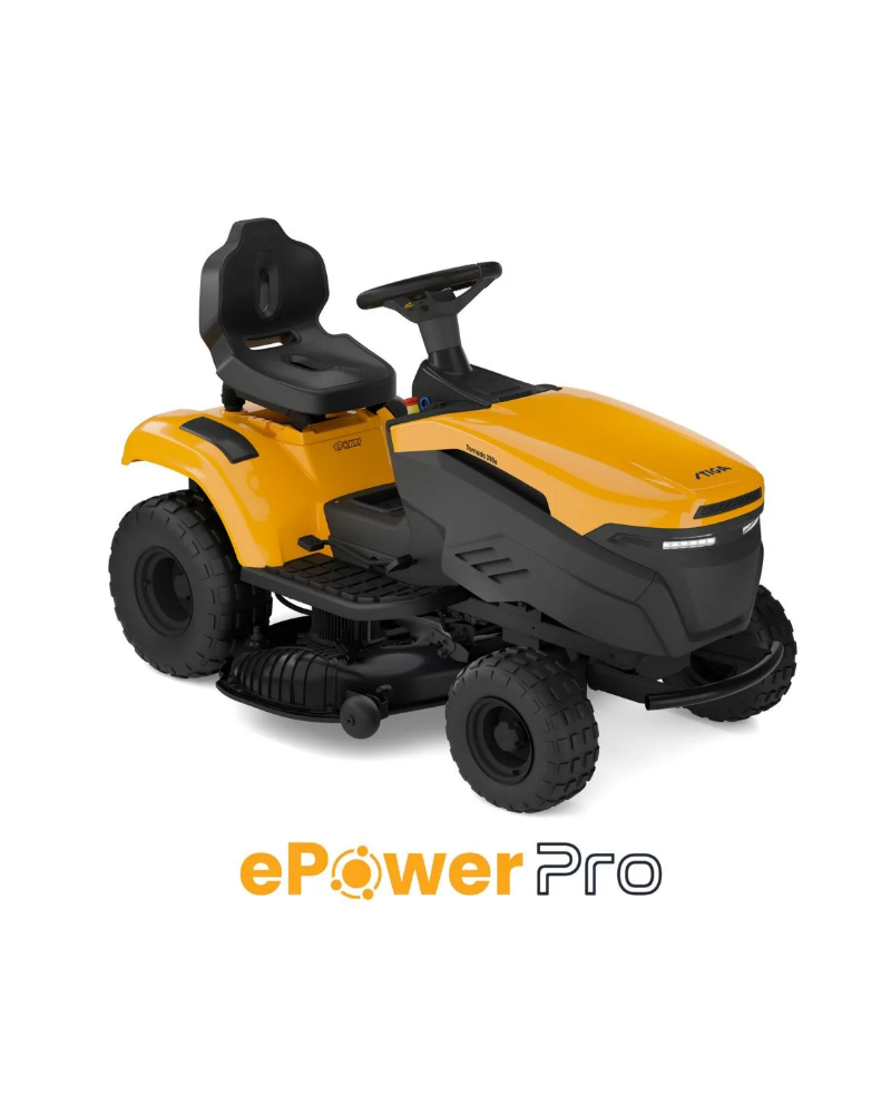 TORNADO 398e del marchio STIGA è un trattorino a batteria con scarico laterale, offre le prestazioni di un trattorino da giardino a scoppio senza il rumore e le emissioni tradizionali, mentre la potenza e la durata della batteria garantisce sessioni di lavoro fino a 7000 m2. (no batterie)
